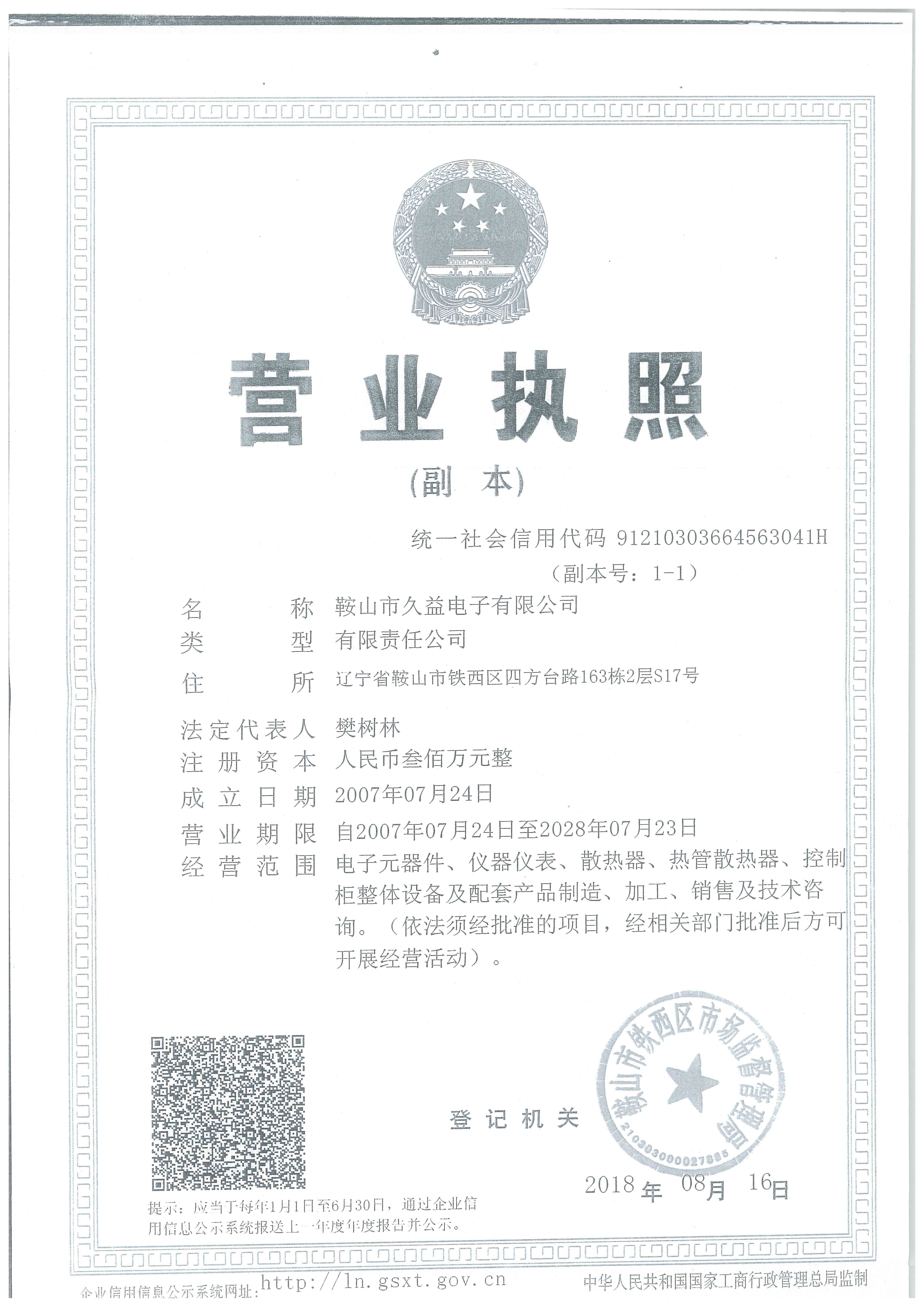 鞍山市久益電子有限公司是以一體化功率半導體組件、熱管散熱器、功率半導體器件等為主導產品,集生產、銷售及自主研發為一體的高新技術企業。 公司位于遼寧省鞍山市鐵西開發區,已通過ISO9001國家質量管理體系認證...
